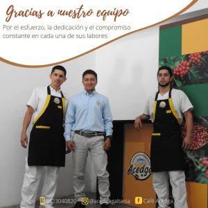 En la Asociación de Cafe "ACEDGA" procesamos las mejores cerezas recolectadas manualmente una a una, beneficiadas y clasificadas con técnicas especiales, pasan a torrefacción a temperatura óptima para resaltar su suavidad, aroma y sabor, cualidades que nos han dado gran prestigio en los paladares de conocedores de café.